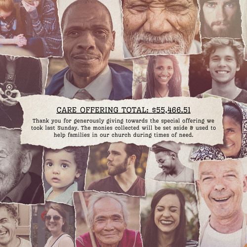 (Monies received from our special offering on 4/7 that will be used to help church families in need.)