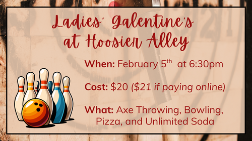 Join us 1/30-1/31 for sermons, games, food, & an all‑night adventure at Hoosier Hills Baptist Camp. Register here by 1/23 for the $50 early‑bird rate; last day to register is 1/26; scholarships are available. Invite your friends! Talk with Blake if you have questions!