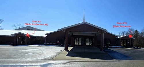 Because the foyer will be inaccessible, those attending the Bible Studies for Life class in the Glow Room will need to enter through Door #3 to reach the classroom. After class, please exit through Door #3 and then enter Door #15 to access the sanctuary.