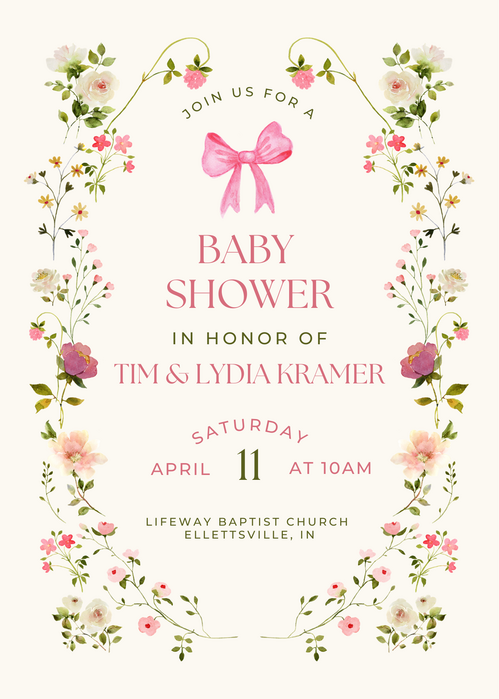 You are invited to join us for a brunch as we honor parents‑to‑be Tim & Lydia Kramer & celebrate the upcoming arrival of baby girl Kramer. This shower is open to couples, & we look forward to celebrating together. To help us plan for food, please sign up at the